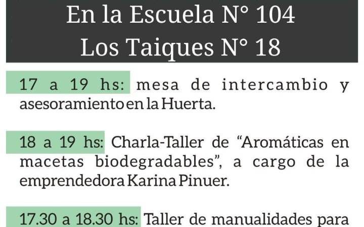 · 18 a 19hs: Charla taller de “Aromáticas en macetas Biodegradables”, a cargo de la emprendedora Karina Pinuer.