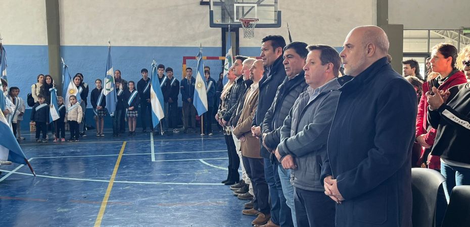 Previamente, los funcionarios colocaron una ofrenda floral en el monumento ubicado en la Plaza de los Pioneros, dedicado a los primeros pobladores de la localidad.