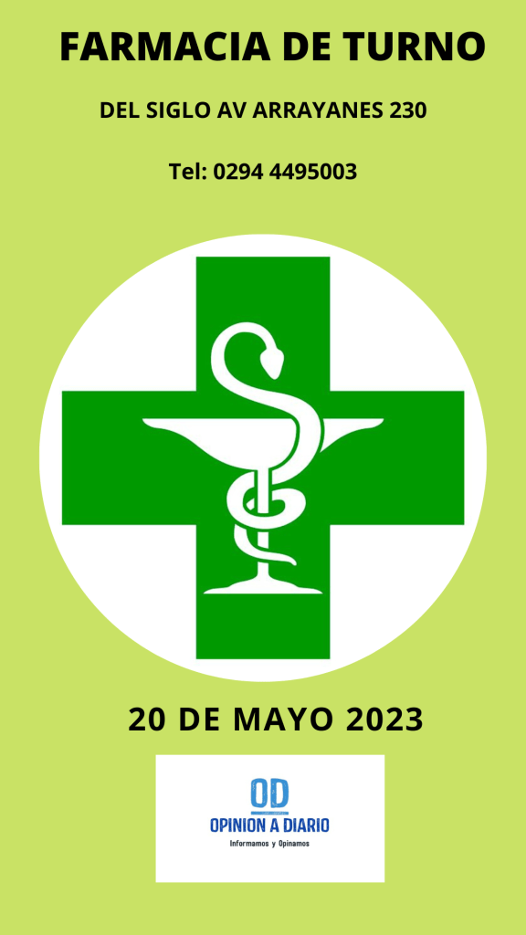 20 de mayo, 2023 Opinión a Diario Farmacia de Turno para hoy sábado 20 de mayo en Villa La Angostura Neuquén Relacionado