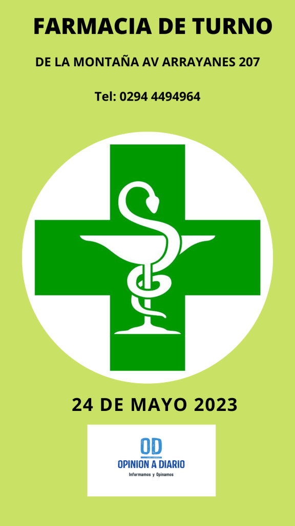 24 de mayo, 202324 de mayo, 2023 Opinión a Diario Farmacia de Turno para hoy miércoles 24 de mayo en Villa La Angostura Neuquén Relacionado