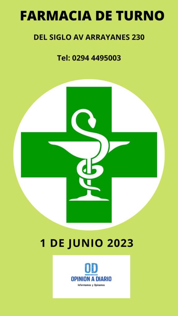 1 de junio, 2023 Opinión a Diario Farmacia de turno para Villa la Angostura, Neuquen, hoy Jueves 1 de Junio. Relacionado