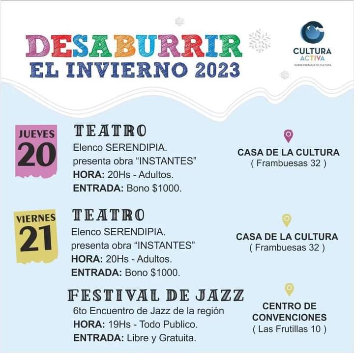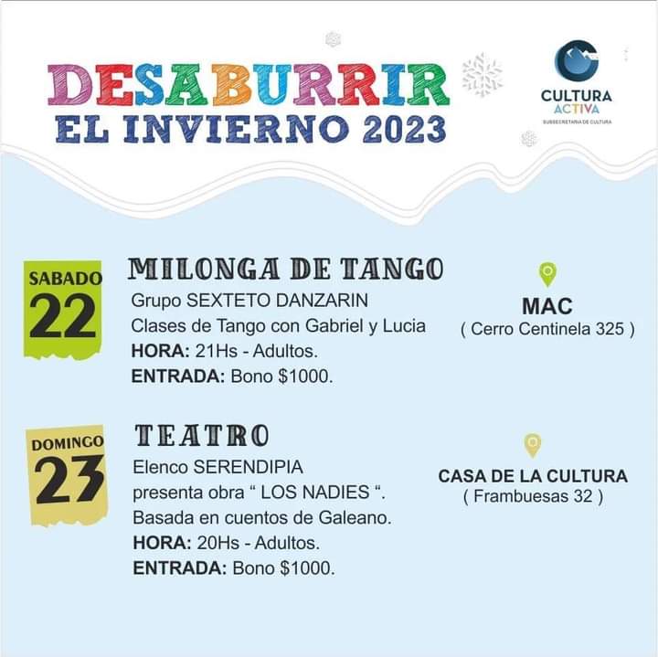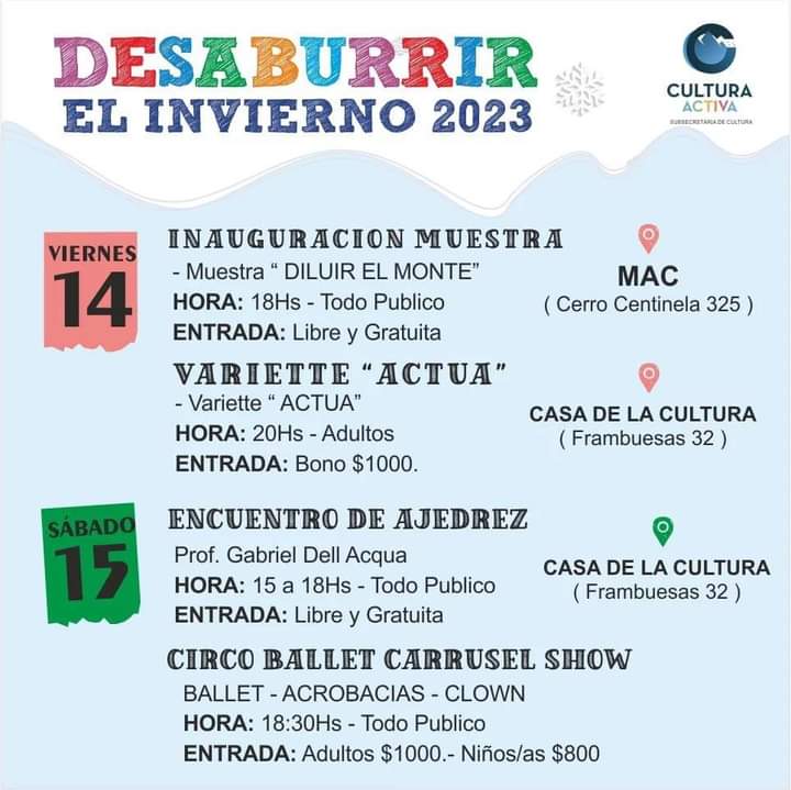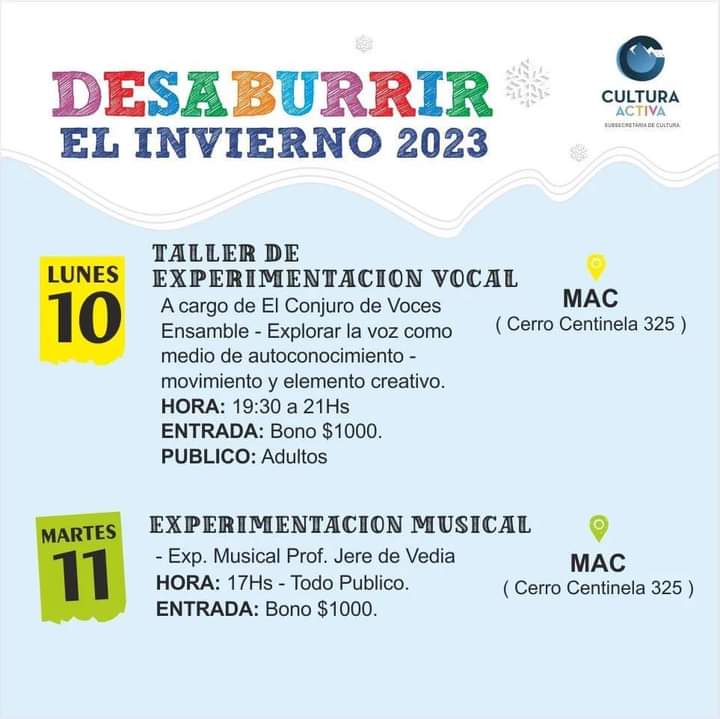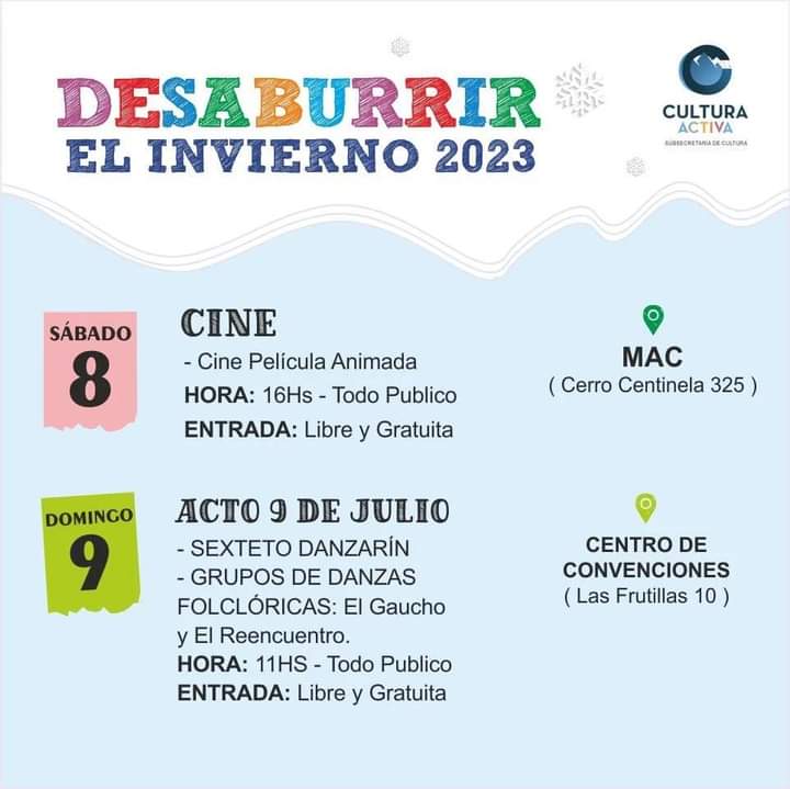 Desde la Subsecretaría de Cultura lanzan el programa Desaburrir el Invierno 2023 con distintas actividades para grandes y niños durante el mes de julio.