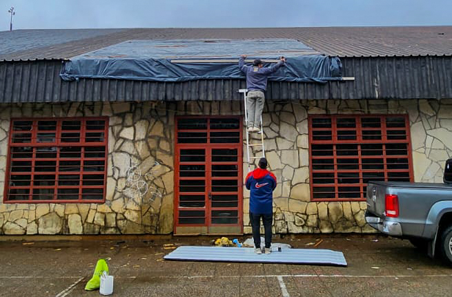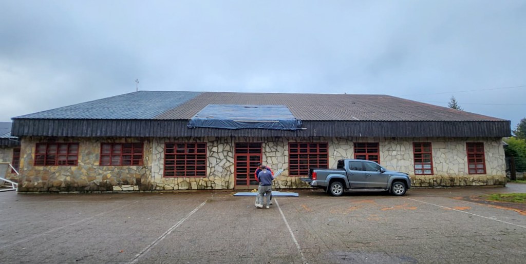 El área de Mantenimiento Escolar informó que el municipio comenzó las tareas para la reparación definitiva en la cubierta del techo del CPEM N°17 de Villa La Angostura, que había sido desplazada por un intenso temporal de viento.