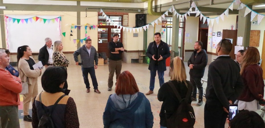 Llancafilo y el intendente de Villa La Angostura Fabio Stefani, acompañados por los equipos de Mantenimiento Escolar de la cartera provincial, de la comuna y referentes de Distrito Educativo se reunieron con la comunidad educativa de la escuela primaria Nº 186 a fines de mayo, cuando acordaron un plan de trabajo que ya está en marcha.