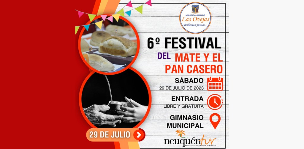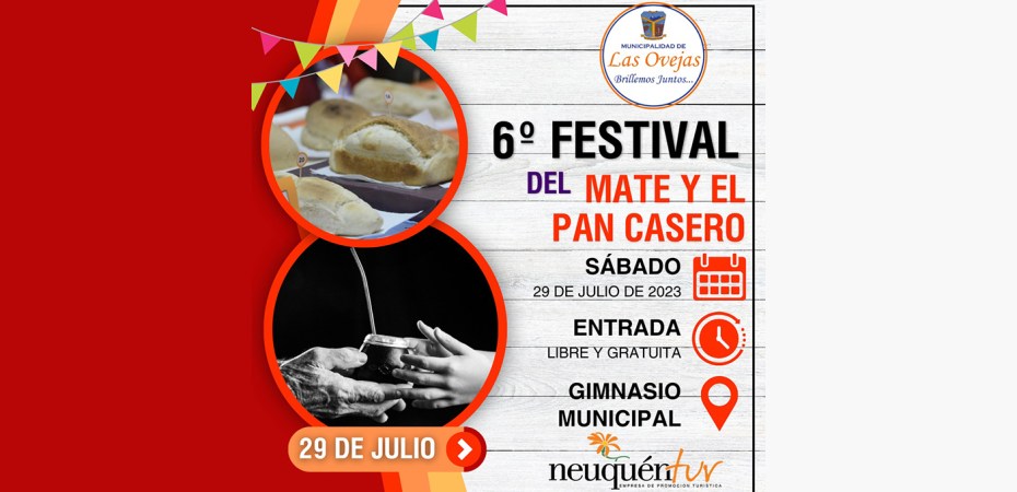 El 29 y el 30 de julio, Las Ovejas va a celebrar la 6° edición del Festival del Mate y el Pan Casero, organizada por el municipio de Las Ovejas y NeuquenTur S.E, se llevará a cabo en el Polideportivo Municipal y tiene como objetivo rescatar y revalorizar las costumbres y cultura local.