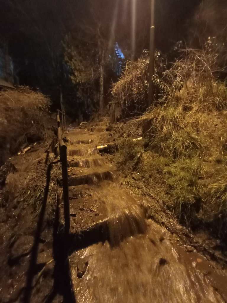 El deslave de esta madrugada, ocurrió en el Cerro Curruhuinca, sobre el inicio de la calle Mariano Moreno. Las intensas precipitaciones de los últimos dias, mas la formación de algunos diques naturales en el sector, desencadeno un deslave en un sector donde unas 20 familias tuvieron que autoevacuarse.