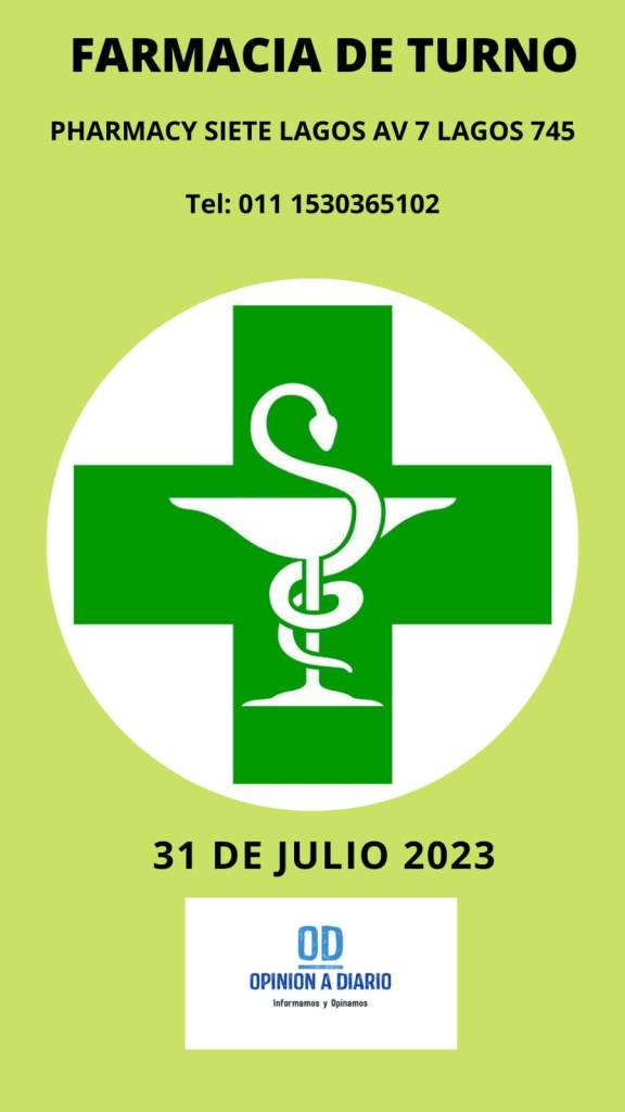 31 de julio, 2023 Opinión a Diario Farmacia de turno para hoy, Lunes 31 de Julio en Villa la Angostura, Neuquen. Relacionado