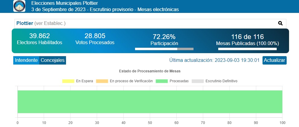 El padrón electoral habilitaba a 39.862 neuquinos a votar el la ciudad de Plottier, y hubo una participacion del 72.26%