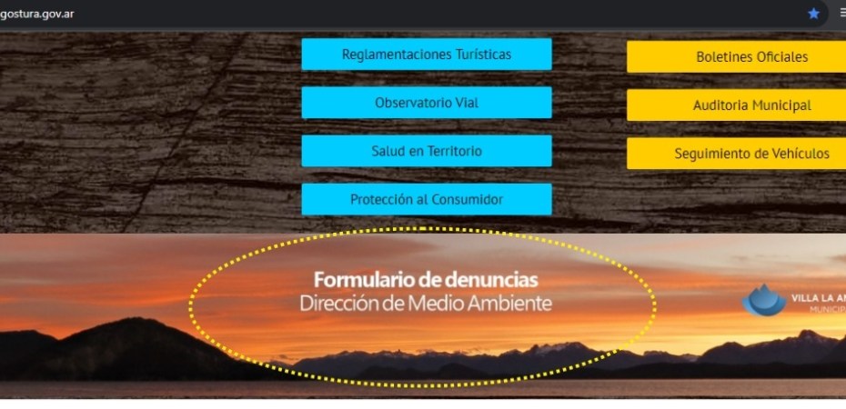 Con el firme propósito de salvaguardar nuestro entorno natural y garantizar un espacio habitable y saludable para todos, la Dirección de Ambiente, perteneciente a la Secretaría de Planeamiento, administra un canal de denuncias ambientales alojado en la página oficial de la localidad: https://villalaangostura.gov.ar/