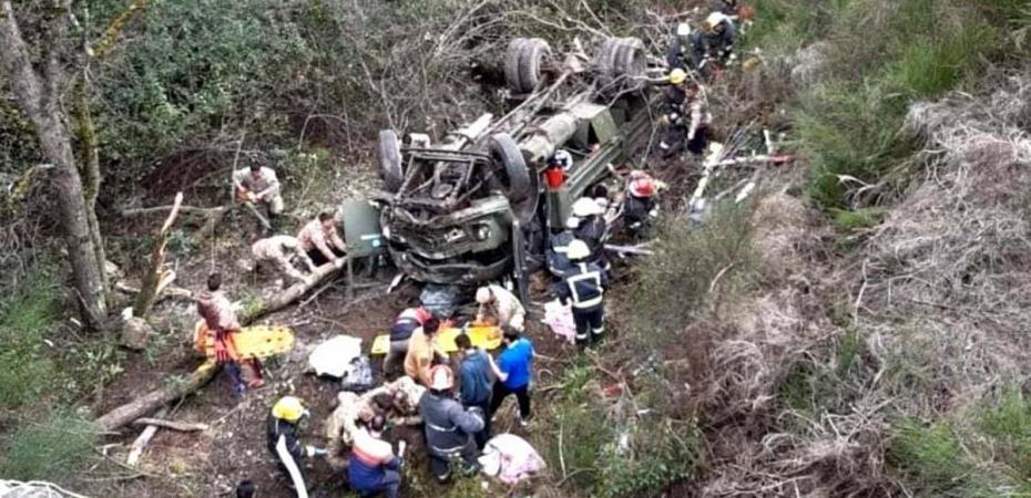 Al arribar las dotaciones al lugar se observa un camión marca Mercedes-Benz del Ejército Argentino volcado con sus cuatro ruedas hacia arriba. En el mismo se trasladaban un total de 22 soldados que se dirigían al Regimiento de Caballería Coraceros General Lavalle luego de realizar ejercicios de ski de fondo en la zona de CORFONE, laguna Rosales.