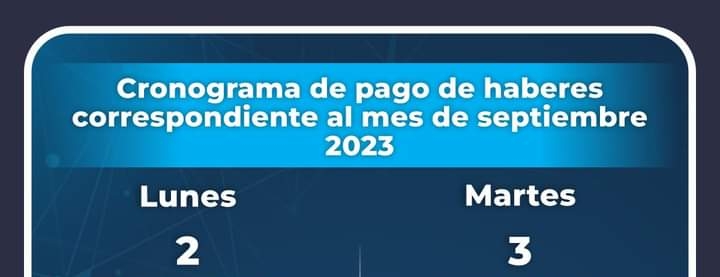 El ministerio de Economía e Infraestructura informó que el próximo lunes, 2 de octubre, comenzará el cronograma de pago de haberes de la administración pública provincial correspondiente al mes de septiembre.