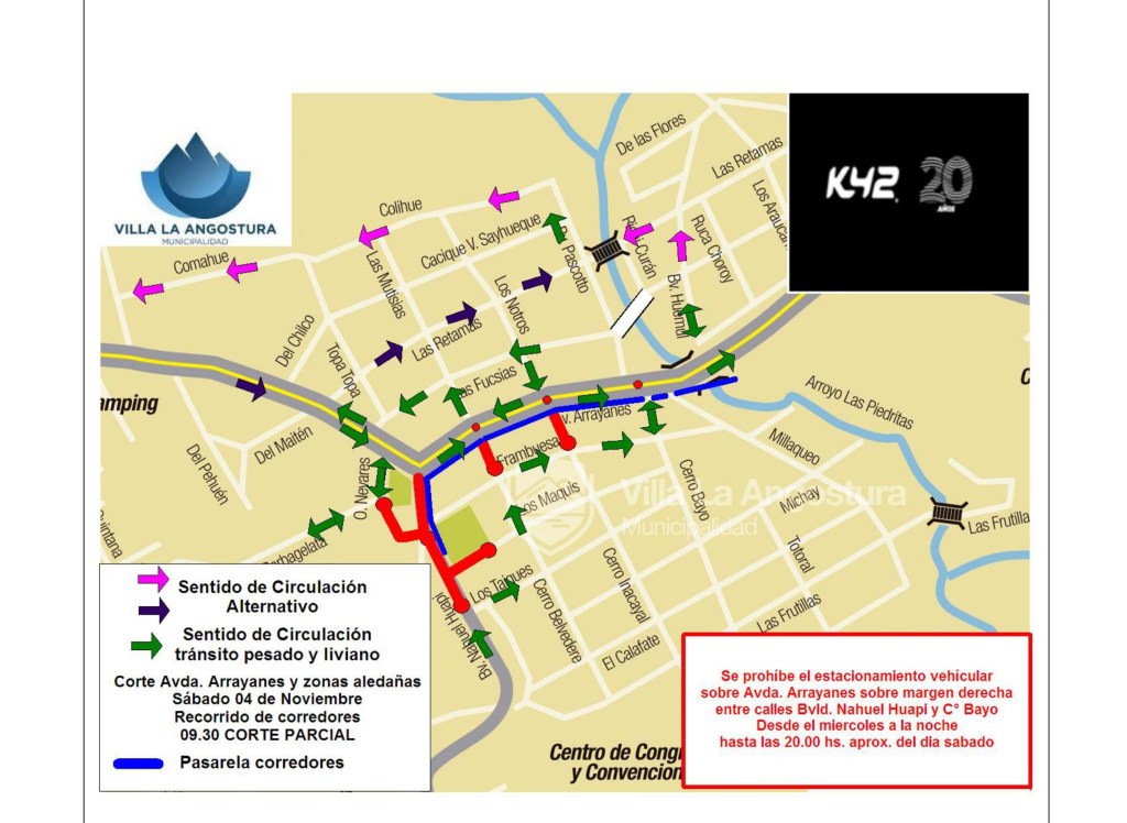 La Dirección de Tránsito y Transporte, dependiente de la Secretaría de Seguridad Ciudadana, Tránsito, Transporte y Protección Civil, informa a la comunidad que a partir del día jueves 2 y hasta el día sábado 4 se encontrará el desarrollo de cortes de programación por la Carrera K42.