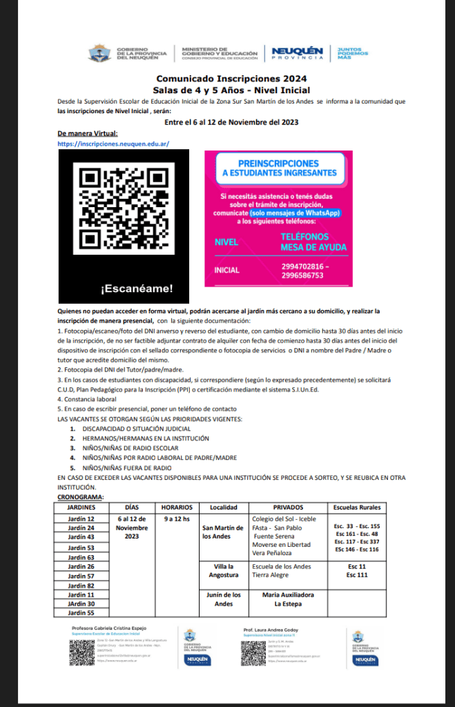 Desde Supervisión Escolar comparten cronograma de inscripciones, documentación a presentar y modalidad para realizar el trámite