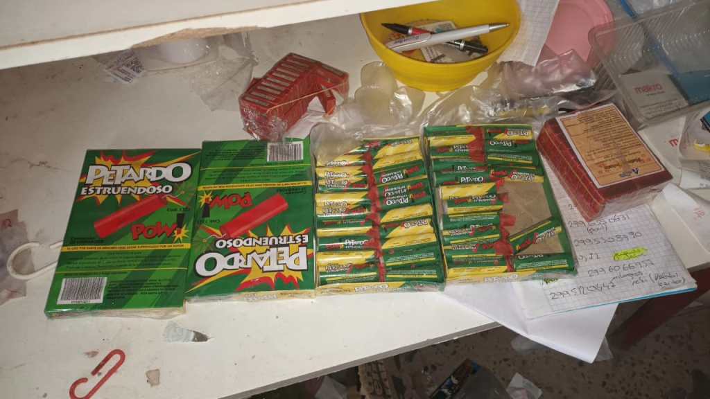 Al llegar al lugar, inspectores del área de Comercio del municipio, con la colaboración de la policía provincial, desplegaron un gran operativo en el que se logró decomisar 77 petardos estruendos, 68 cajas de fósforos cohetes por 8 unidades cada una de las cajas.