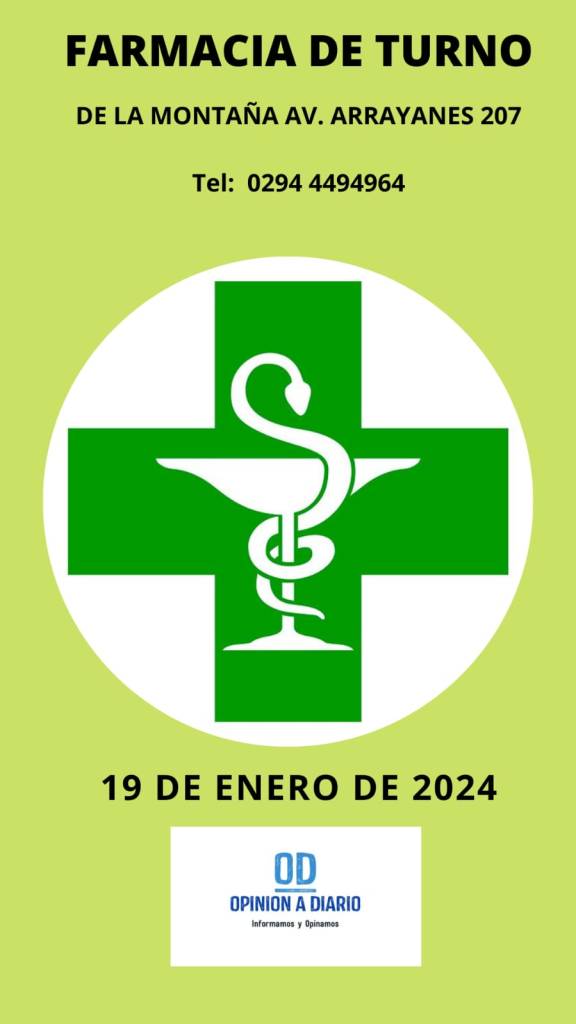 18 de enero, 2024 Opinión a Diario Farmacia de turno para hoy, Jueves 18 de Enero en Villa la Angostura, Neuquen. Relacionado