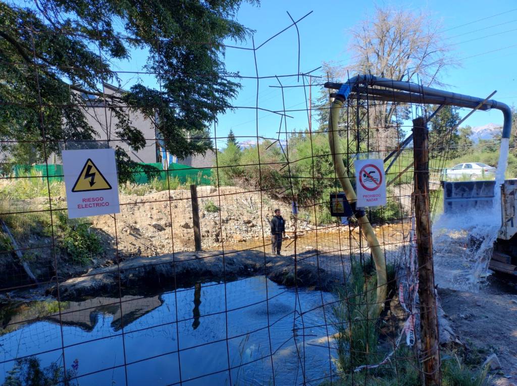 En un parte de prensa defensa civil de Villa la Angostura, pide a los vecinos y vecinas que o se bañen en la zona de la toma de agua de los camiones regadores en el Barrio las Piedritas, el riesgo eléctrico es muy alto.