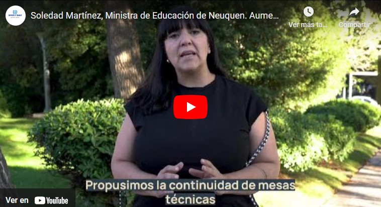 La ministra de educación de la provincia del Neuquen compartió un video donde expone por que otorgaron el aumento por decreto pese a la radicalización de la postura de algunas seccionales de ATEN que endurecieron su postura y rechazaron la propuesta efectuada por el ministro Tobares en la mesa salarial del Jueves.