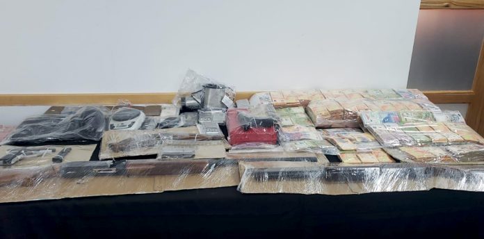 Esta mañana se realizó una conferencia de prensa para informar y exponer los elementos secuestrados, así como el dinero en efectivo, las municiones y armas de grueso calibre con la presencia del Subjefe Comisario Mayor San Martín Walter, el Superintendente de Investigaciones comisario mayor Dante Catalán y el director de Antinarcóticos, comisario inspector Llaytuqueo.