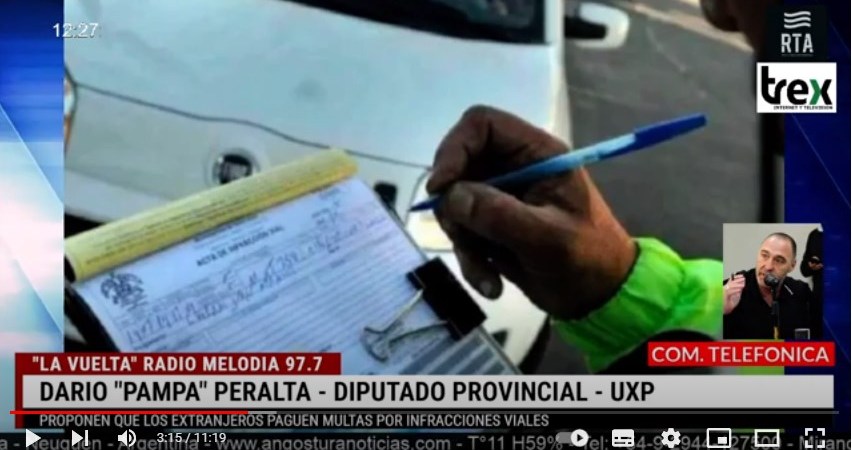 El diputado Peralta ayer en una entrevista en «La Vuelta» que se emite en Fm Melodías 97.7, aseguro que están dadas las condiciones en la legislatura para que el proyecto de resolución salga con apoya de la mayoría de los diputados, le tocara al ejecutivo realizar los convenios y gestiones para que en todo el territorio de la provincia, aquellos extranjeros que cometan infracciones de transito, al momento del regreso a su lugar de origen tengan que pagar las multas correspondientes.