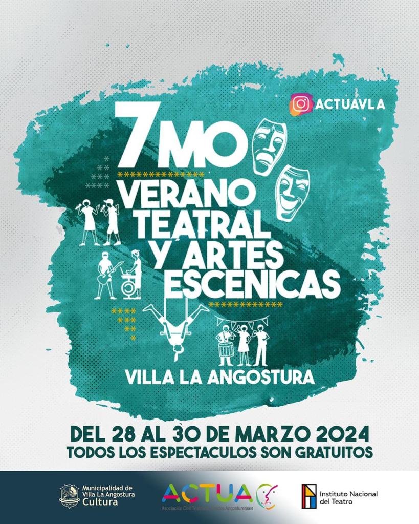Este 28, 29 y 30 de Marzo se llevará a cabo la 7 edición del VERANO TEATRAL. El festival de artes escénicas que ya se instaló en la agenda de los y las angosturenses, turistas y gente de localidades vecinas que vienen especialmente a disfrutar de la programación de obras locales y de otras regiones.