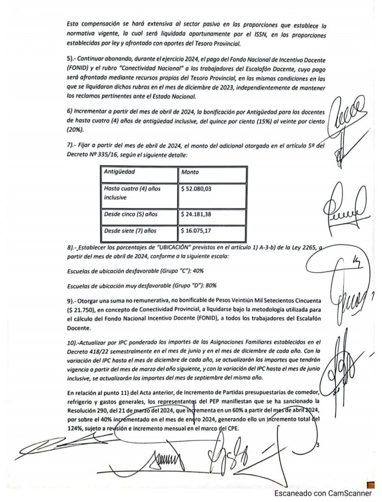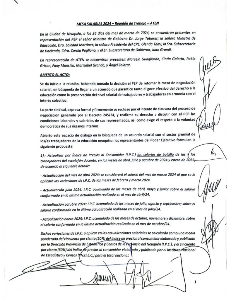 Cabe recordar que el gobierno de la provincia del Neuquén otorgó aumento por decreto, luego de que la organización gremial rechazara la propuesta salarial que incluía, tanto la actualización de los sueldos a través del índice de precios al consumidor (IPC), como una serie de ítems que se incorporaron a lo largo de la mesa de negociaciones.