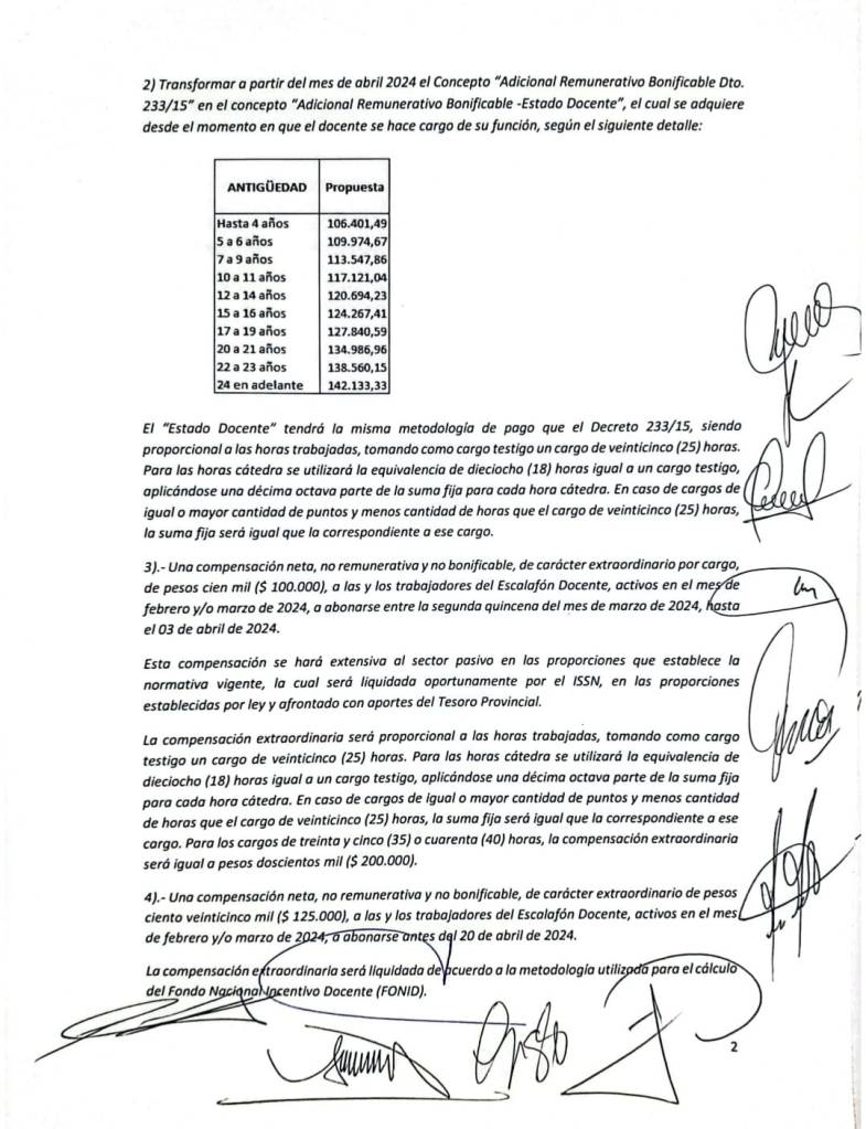 El Gobierno provincial mejoro la oferta salarial a los docentes que ahora deberán decidir si aceptan o siguen con las medidas de fuerza, además tampoco descontaran los dias de paro si hay acuerdo.