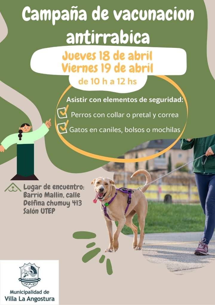 Durante la mañana de hoy jueves y mañana viernes en Chumuy 413 del Barrio Mallin podés acercarte con tus mascotas para vacunarlos