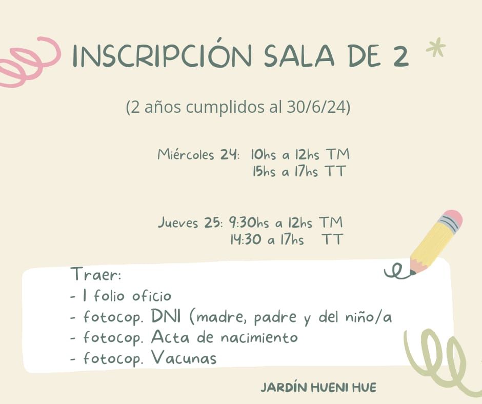 La Supervisión Escolar de Educación Inicial de la Zona 12 conjuntamente con la dirección del Jardín de Infantes N° 57 informan a la comunidad que los días 23, 24 y 25 de abril se realizará la inscripción para niños y niñas de 2 años para ciclo maternal en el mencionado establecimiento escolar.