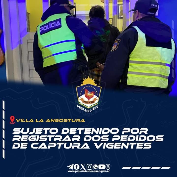 Uniformados de la Comisaría 28 de la localidad de Villa La Angostura, demoraron ayer (01/05), a un sujeto que registraba dos pedidos de captura vigentes.