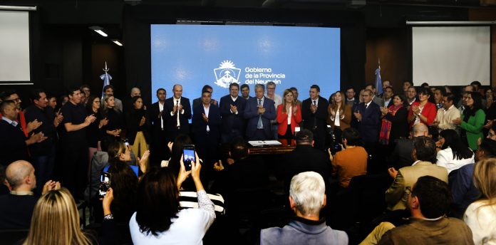 El gobernador de Neuquén, Rolando Figueroa, encabezó este jueves el lanzamiento del nuevo programa habitacional de la provincia, que involucra a los ministerios de Infraestructura y Economía, Producción e Industria, organismos descentralizados, municipios y comisiones de fomento, y el Banco Provincia del Neuquén (BPN). El anuncio prevé la reactivación de la obra pública, generación de puestos de empleo y más soluciones habitacionales a través de créditos hipotecarios y préstamos por un monto total que supera los 25.000 millones de pesos.