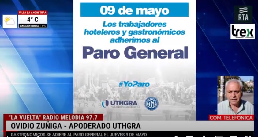En una entrevista en el Programa «La Vuelta», Ovidio Zúñiga hablo de todo, El paro Nacional del 9, la paritaria Gastronómica y Hotelera y el reclamo a los empresarios del sector de negociar una paritaria para la region. Además se refirio a la reforma laboral y como impactara a los trabajadores en la zona.