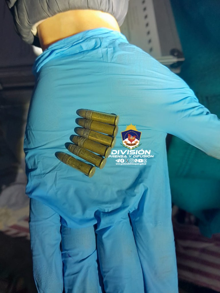 Tras individualizar un inmueble de calle Los Charcanes, los uniformados realizaron la correspondiente orden de allanamiento, arrojando como resultado la aprehensión un hombre de 20 años y el secuestro de un aire comprimido tipo rifle, dos cajas con balines, un arma tipo escopeta también de aire comprimido, postas de goma, color negro, municiones de arma de fuego calibre 22, un arma de fuego calibre 22, un cargador con municiones del mismo calibre y dos cajas de metal con balines.