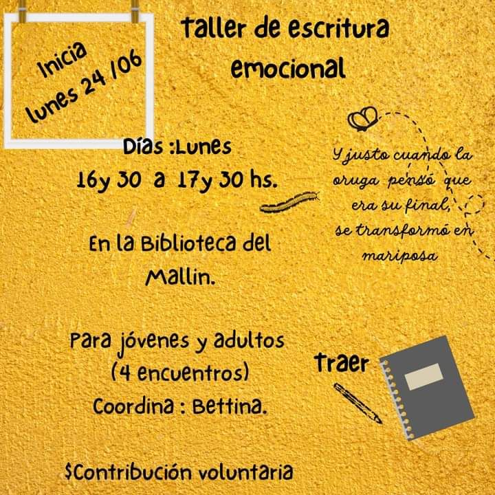 ABRIMOS UN NUEVO HORARIO para el Taller de Escritura Emocional!