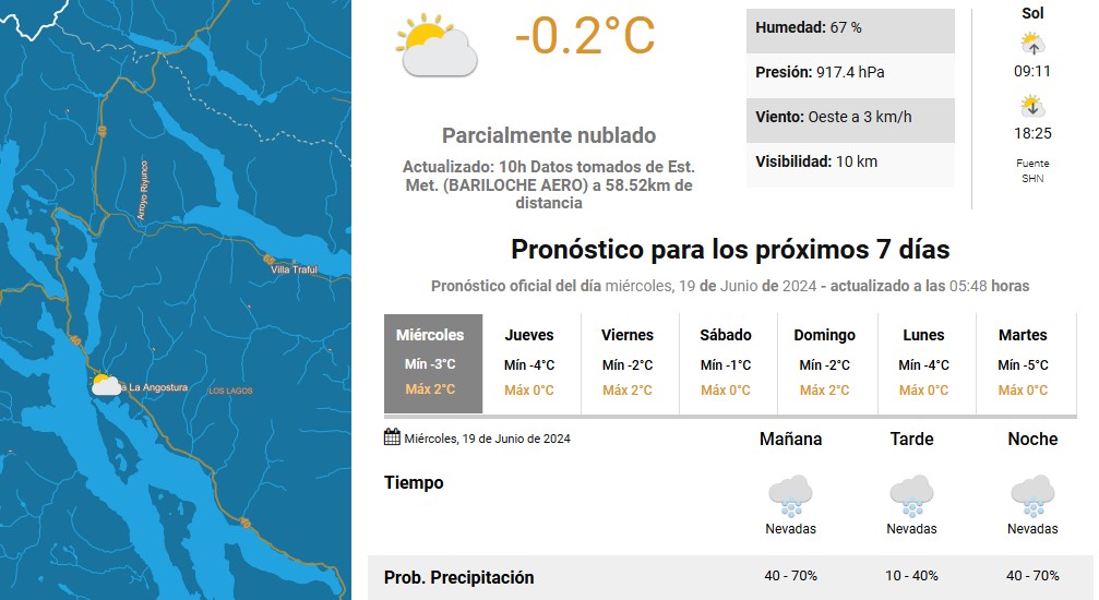 ALERTA METEOROLÓGICO POR NEVADAS PARA JUEVES Y VIERNES en Zona Parque Nacional Nahuel Huapi.