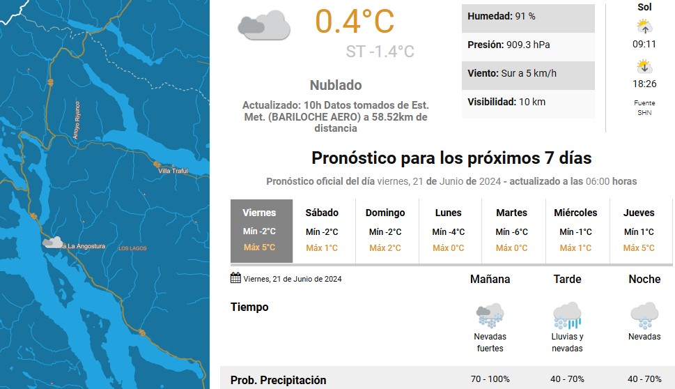Hielo y nieve durante la mañana y agua nieve y mas nieve durante la tarde noche, la jornada se mantendrá apenas un poco mejor que el día de ayer, pero todavía continua el Alerta y el peligro de circular por las calles y veredas de Angostura.