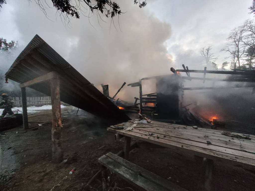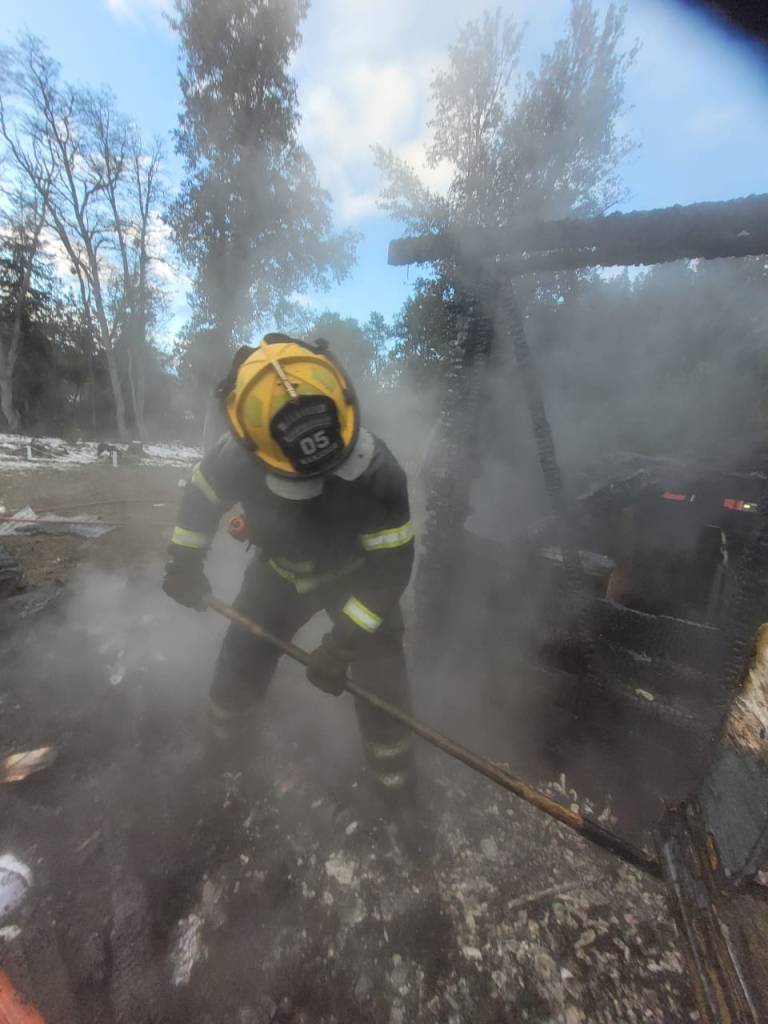 Los Bomberos Voluntarios de Villa la Angostura recibieron una llamado telefónico a las 08.39hs por alertando de un incendio en una vivienda del Barrio Calfuco, sobre calle las nieves.