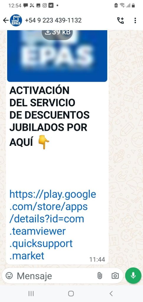 Se trata de personas que simulan pertenecer al EPAS y ofrecen supuestos beneficios o promociones, enviando enlaces que luego utilizan para hackear los dispositivos.