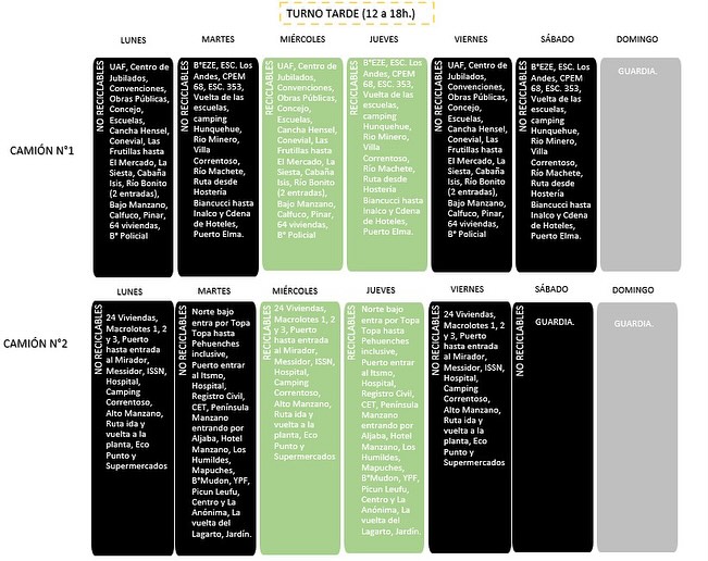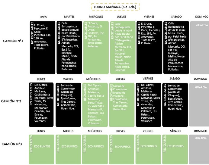 La municipalidad en un parte de prensa informo los dias y horarios que se implementaran a partir del 5 de Agosto en la nueva etapa de recolección diferenciada en la localidad, es importante saberlo e intentar cumplir con los dias y separar en origen para reducir el impacto ambiental y ayudar a los trabajadores que a MANO separan los residuos en el centro ambiental con los riesgos que ello implica.