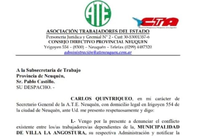 En la denuncia de paro que Quintriqueo elevo al ministerio de trabajo se deja constancia que a partir de hoy a las 9 y por tiempo indeterminado, tomaran distintas medidas de fuerza en reclamo del intento de la JACAD por pedir la derogación del decreto que Murer arreglo con ellos, vale la pena aclarar que el decreto esta cuestionado no solo por su contenido sino por que fue emitido por fuera de lo que marca la normativa vigente.
