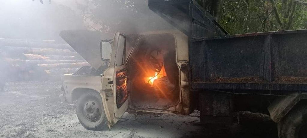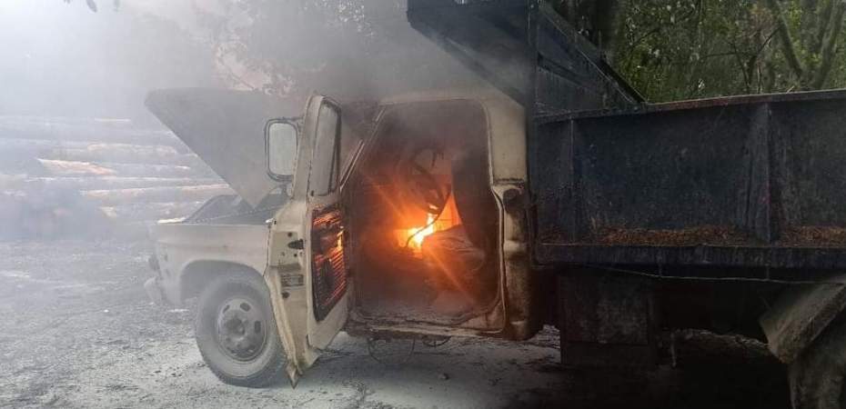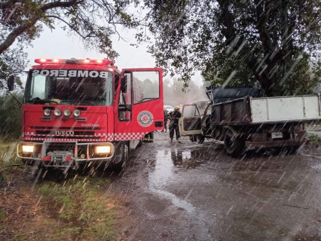 Alrededor de las 18.00hs se recibe un llamado telefonico informando del incendio de un camion en el barrio Cumelen, sobre calle 50.
