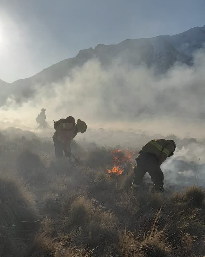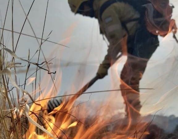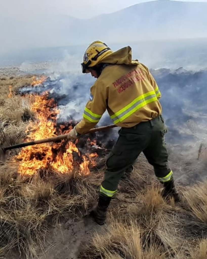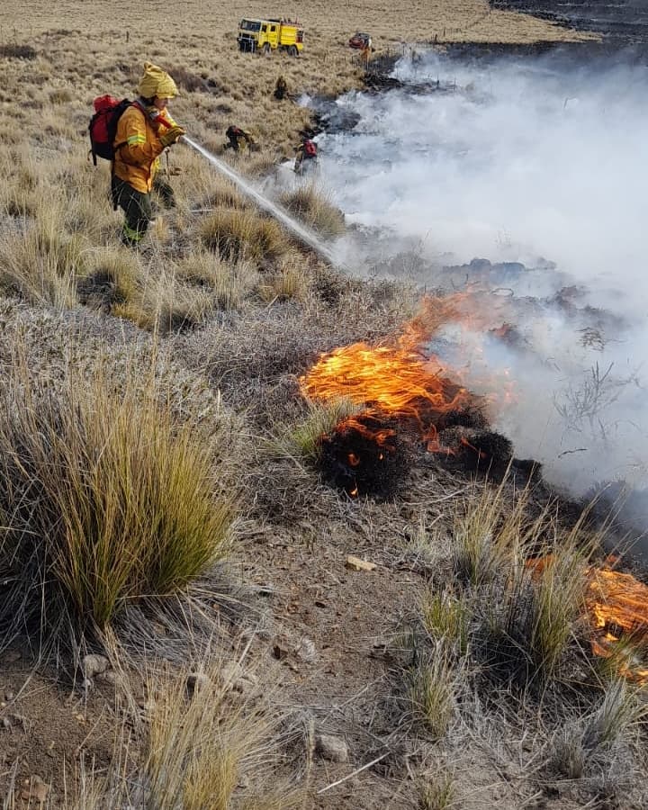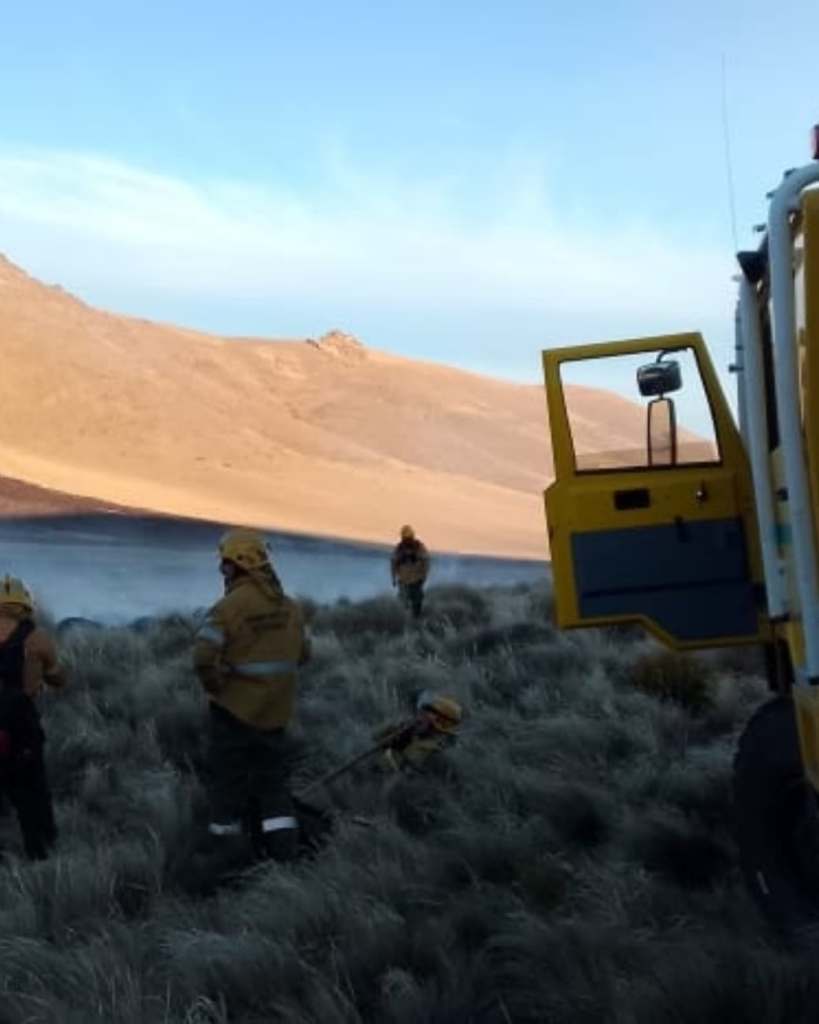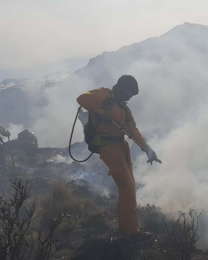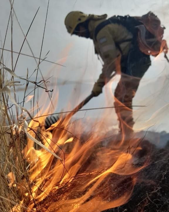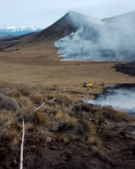 Bomberos voluntarios informo en sus redes sociales que asistió a Parques Nacionales en el combate del incendio desatado en la zona de la estancia Fortín Chacabuco, participaron con la unidad forestal del cuartel local.