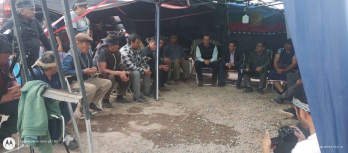 Autoridades del Gobierno provincial neuquino, encabezadas por el ministro de Gobierno, Jorge Tobares, firmaron un acta acuerdo con representantes de las comunidades nucleadas en el Consejo Zonal Xawvnko de la Confederación Mapuche de Neuquén.