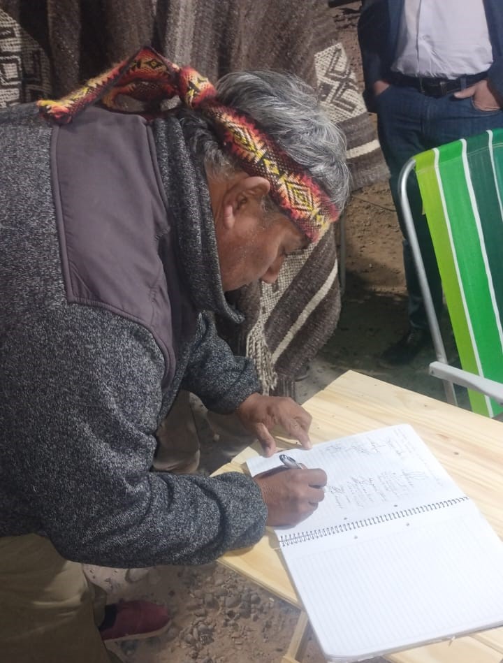 Participaron de la firma por el Lof Newen Mapu, Jorge Nawel y Lautaro Nahuel: por el Lof Kaxipayiñ, Gabriel Cherqui; por el Lof Wircaleo, Luis Briceño; por el lof Futa Xayen, Liliana Romero; por el Lof Ragileo Cárdenas, Nelson Cardenas; por el Lof Newen Kura, Antonia Molina; por el Lof Kelv Kura, Aníbal Lisama; por el Lof Campo – Maripe, Campos Mabel; por la Confederación Mapuche, Gilberto Huilipan; y el subsecretario de Gobierno, Juan Grandi.