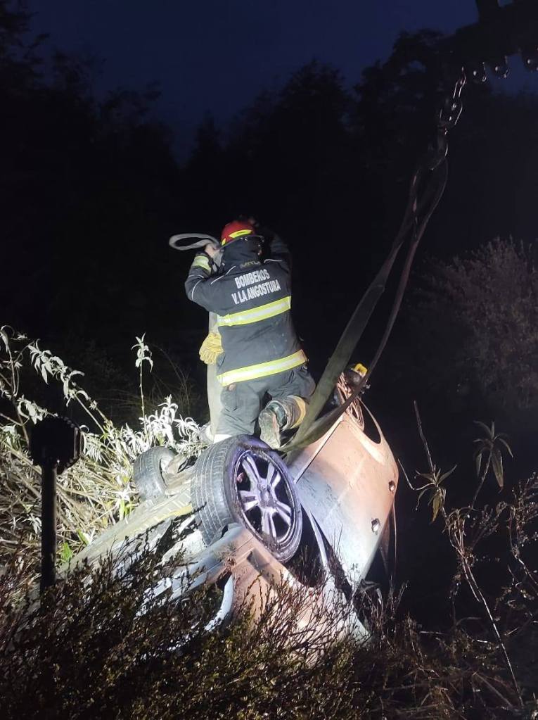 Alrededor de las 1915 Bomberos Voluntarios recibió un llamado informando de un auto vuelco en al ruta 40 en la zona de la bajada Ruca Malen, hacia el lugar partieron unidades de rescate, personal de la policía del Neuquen y una ambulancia del Hospital Dr. Oscar Arraiz.