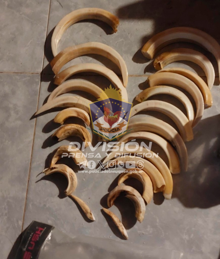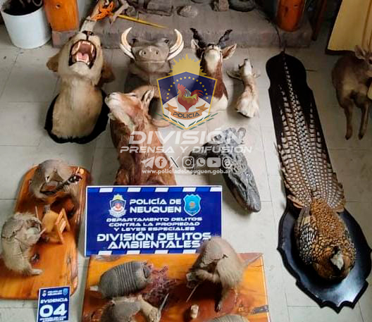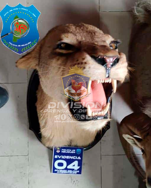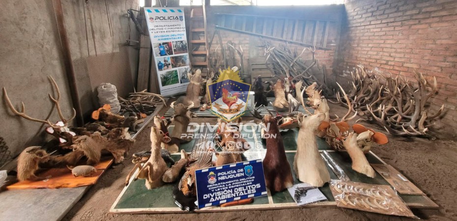 Como resultado de la investigación, en la mañana de hoy se ejecutó un allanamiento en una vivienda de Junín de los Andes, diligencia que permitió a las autoridades encontrar una amplia variedad de productos y subproductos de fauna silvestre. Entre los objetos secuestrados había cabezas y cráneos de animales como ciervos, antílopes, jabalíes, e incluso una leona. También se incautaron 21 astas de ciervo colorado, pieles y colmillos de jabalí, y partes de animales exóticos. Estos productos, que carecían de la documentación requerida por las normativas locales y el Convenio CITES, son indicativos de prácticas de caza furtiva y comercialización ilegal.