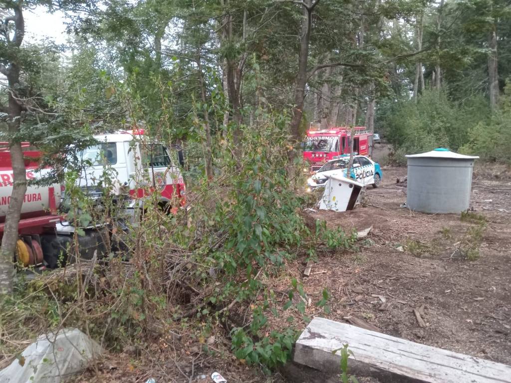 Hacia el Lugar y viendo el entorno de gran cantidad de arboles se trasladaron 3 dotaciones de Bomberos, la Brigada de Incendios Forestales y la Policía del Neuquen.