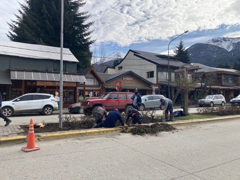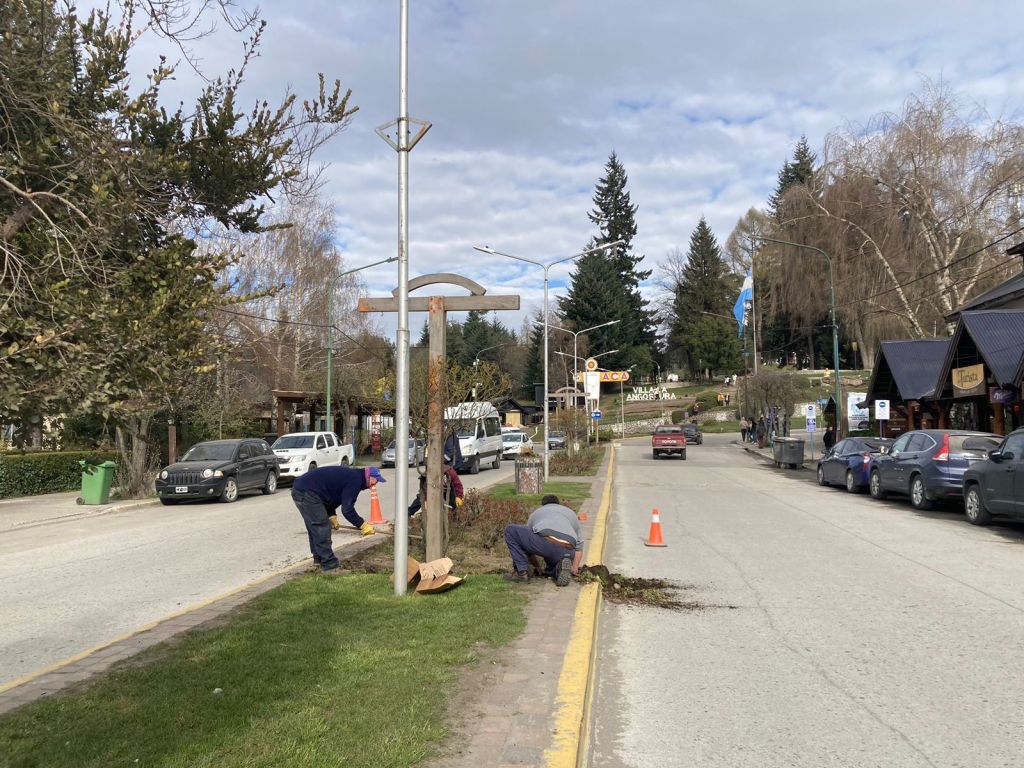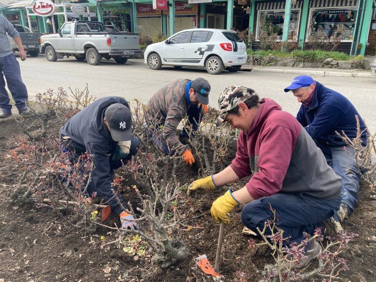 El equipo de Parques y Jardines, dependiente de la Secretaría de Servicios Públicos, está llevando a cabo tareas de embellecimiento y poda de los rosales en la Avenida Arrayanes.