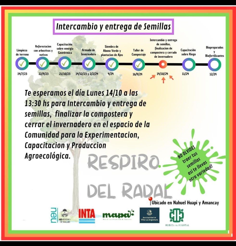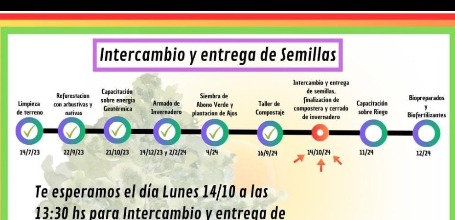 Hoy lunes 14 de octubre, se llevará a cabo un nuevo encuentro en el “Espacio de la Comunidad para la Experimentación, Capacitación y Producción Agroecológica”, con un enfoque en el intercambio y la entrega de semillas, finalizar la compostera y cerrar el invernadero.