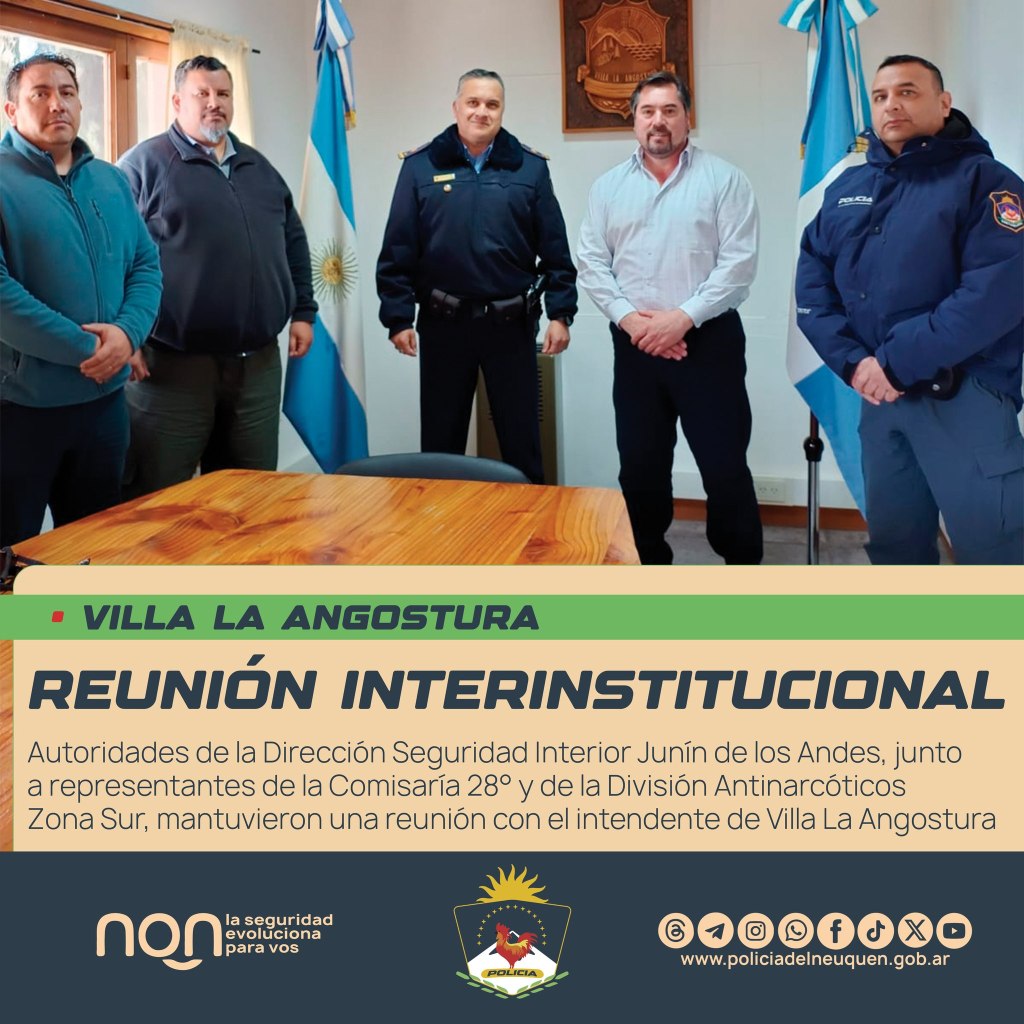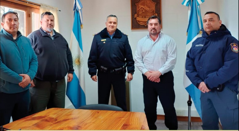 Autoridades de la Dirección Seguridad Interior Junín de los Andes, junto a representantes de la Comisaría 28° y de la División Antinarcóticos Zona Sur, mantuvieron una reunión con el intendente de Villa La Angostura.