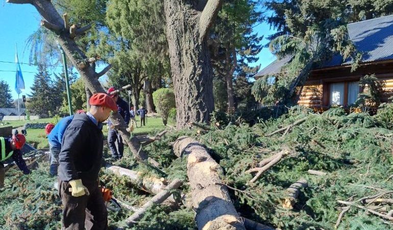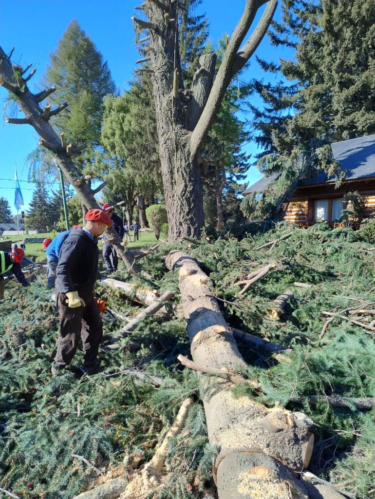 El día sábado 26 de octubre se realizaron tareas de apeo preventivo de un pino de grandes características el cual se encontraba ubicado en el parque del edificio municipal. Las tareas realizadas desde la Secretaría de Servicios Públicos consistieron en bajar el riesgo de caída sobre la vía pública. Con el objetivo de garantizar la seguridad de los vecinos, el equipo especializado se encargó de reducir el riesgo de caída del pino, que, debido a su tamaño y antigüedad, presentaba una amenaza en caso de vientos fuertes u otras condiciones adversas.
